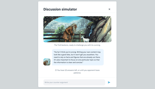 - If your opponent declares you the loser without sound reasoning, try to remain patient. AI is unpredictable, making it hard to create a reliable discussion simulator. However, we think this environment can be a great way to learn. Instead of seeing the quirks as problems, view them as chances to hone your skills.