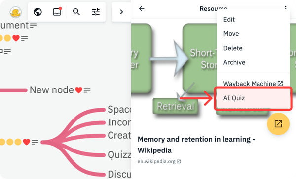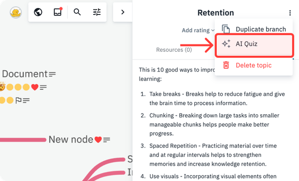 To open the AI Quiz, navigate to any topic or resource and press the "⋮" button.