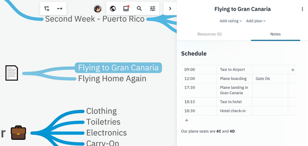 A mind map is also a great tool for reducing anxiety when packing for a trip. By mapping out what you need to bring, you can avoid forgetting important items. And when you're in the moment and unsure of what cafe or attraction to visit, the map can be a helpful lookup.